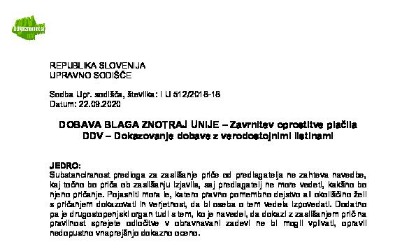 IZPOLNJEVANJE POGOJEV ZA DOBAVO BLAGA ZNOTRAJ UNIJE, OPROŠČENO PLAČILA DDV NA PODLAGI 46. ČLENA ZDDV-1 – Nepopolne CMR listine (I U 1704/2021-38) 27.11.2024 15.10.2025