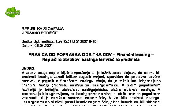 PRIDOBITEV VOZILA – PREDPLAČILO ZA PRIHODNJO PRODAJO VOZILA – Pridobitev novega ali rabljenega vozila (I U 1443/2022-29) 23.10.2024 19.03.2025