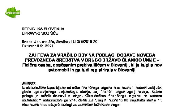 IZPOLNJEVANJE POGOJEV ZA DOBAVO BLAGA ZNOTRAJ UNIJE, OPROŠČENO PLAČILA DDV NA PODLAGI 46. ČLENA ZDDV-1 – Nepopolne CMR listine (I U 1704/2021-38) 27.11.2024 15.10.2025