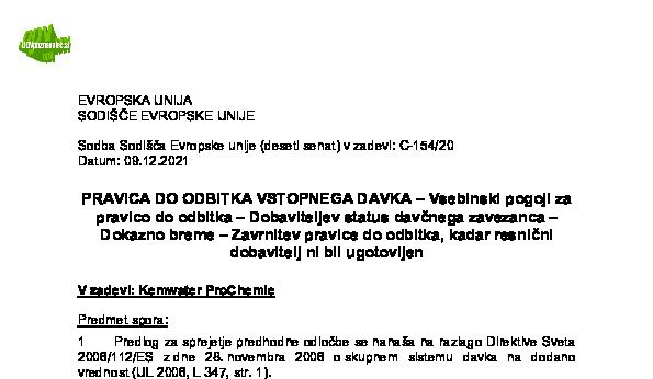 SOLIDARNA ODGOVORNOST – INSOLVENTNOST GLAVNEGA DOLŽNIKA – Ohranitev obveznosti plačila DDV – Solidarna odgovornost tretje osebe po izbrisu glavnega dolžnika iz poslovnega registra (C-121/24) 11.12.2025 12.12.2025