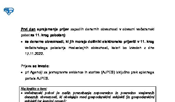 Prijava denarnih obveznosti v obvezni večstranski pobot - v letu 2026 (zadnji dan prijave v krog pobota) 30.12.2025
