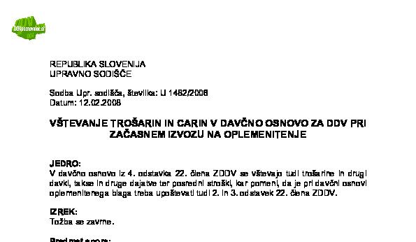 IZPOLNJEVANJE POGOJEV ZA DOBAVO BLAGA ZNOTRAJ UNIJE, OPROŠČENO PLAČILA DDV NA PODLAGI 46. ČLENA ZDDV-1 – Nepopolne CMR listine (I U 1704/2021-38) 27.11.2024 15.10.2025