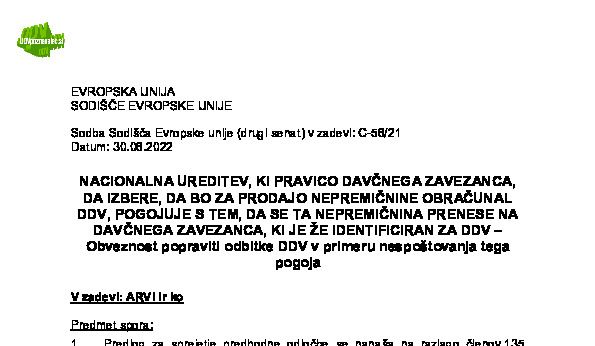 Članek nima posebnosti! Sklepni predlogi - C-56/21 (ARVI ir ko).doc
