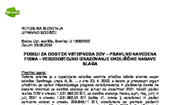 IZPOLNJEVANJE POGOJEV ZA DOBAVO BLAGA ZNOTRAJ UNIJE, OPROŠČENO PLAČILA DDV NA PODLAGI 46. ČLENA ZDDV-1 – Nepopolne CMR listine (I U 1704/2021-38) 27.11.2024 15.10.2025