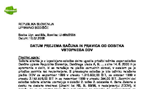 IZPOLNJEVANJE POGOJEV ZA DOBAVO BLAGA ZNOTRAJ UNIJE, OPROŠČENO PLAČILA DDV NA PODLAGI 46. ČLENA ZDDV-1 – Nepopolne CMR listine (I U 1704/2021-38) 27.11.2024 15.10.2025