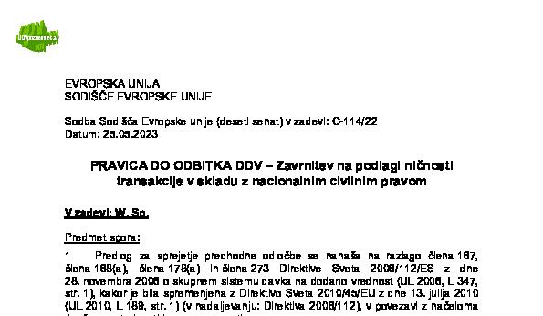 SOLIDARNA ODGOVORNOST – INSOLVENTNOST GLAVNEGA DOLŽNIKA – Ohranitev obveznosti plačila DDV – Solidarna odgovornost tretje osebe po izbrisu glavnega dolžnika iz poslovnega registra (C-121/24) 11.12.2025 12.12.2025