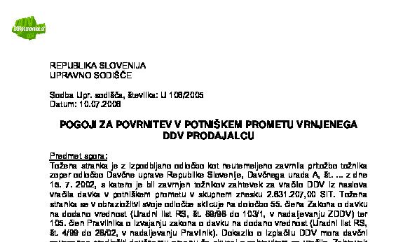 IZPOLNJEVANJE POGOJEV ZA DOBAVO BLAGA ZNOTRAJ UNIJE, OPROŠČENO PLAČILA DDV NA PODLAGI 46. ČLENA ZDDV-1 – Nepopolne CMR listine (I U 1704/2021-38) 27.11.2024 15.10.2025