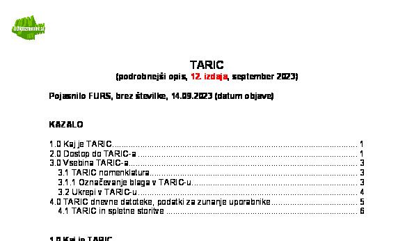 Članek nima posebnosti! TARIC3 - Uporabniška navodila - Opis spletnih funkcij (tehnična dokumentacija).docx
