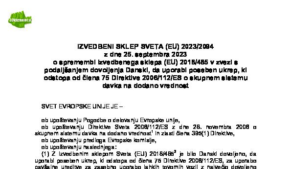 IZVEDBENI SKLEP SVETA (EU) 2024/2884 z dne 5. novembra 2024 o spremembi Izvedbenega sklepa (EU) 2018/1994 o dovoljenju Hrvaški, da uvede posebni ukrep, ki odstopa od točke (a) člena 26(1) ter členov 168 in 168a Direktive 2006/112/ES o skupnem sistemu DDV 14.11.2024