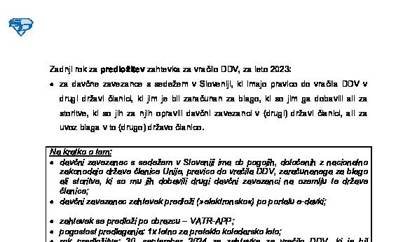 Predložitev obračuna DDV-O ter evidence obračunanega DDV in odbitka DDV 10.12.2025