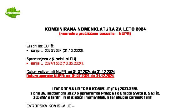 Kombinirana nomenklatura za leto 2025 01.01.2025 31.12.2025 05.11.2024
