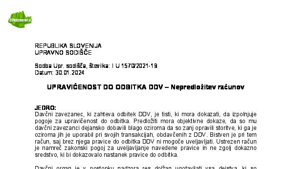IZPOLNJEVANJE POGOJEV ZA DOBAVO BLAGA ZNOTRAJ UNIJE, OPROŠČENO PLAČILA DDV NA PODLAGI 46. ČLENA ZDDV-1 – Nepopolne CMR listine (I U 1704/2021-38) 27.11.2024 15.10.2025