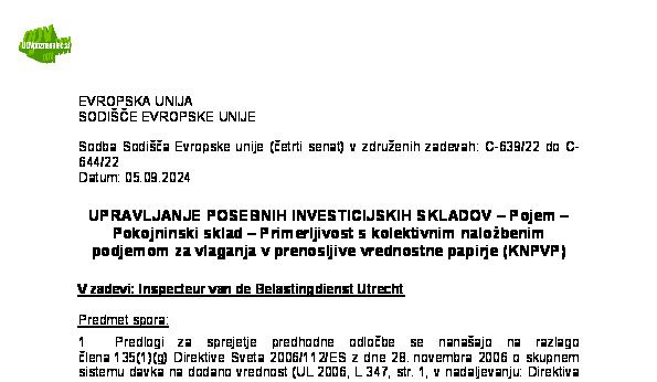 OPROSTITEV V ZVEZI Z DAJANJEM KREDITOV – OPROSTITEV V ZVEZI S FINANČNIMI TRANSAKCIJAMI – IZTERJAVA DOLGOV – Faktoring s prodajo terjatev – Faktoring z zastavno pravico (C-332/24) Kosmiro 23.10.2025 28.10.2025