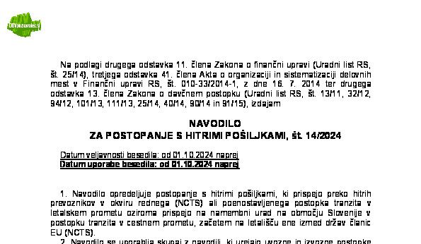 NAVODILO o formalnostih, vezanih na plačevanje uvoznega DDV, št. 13/2016 01.09.2025 28.08.2025