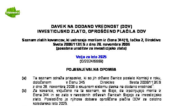 Seznam zlatih kovancev, ki ustrezajo kriterijem za investicijsko zlato (velja za leto 2024) 24.11.2023