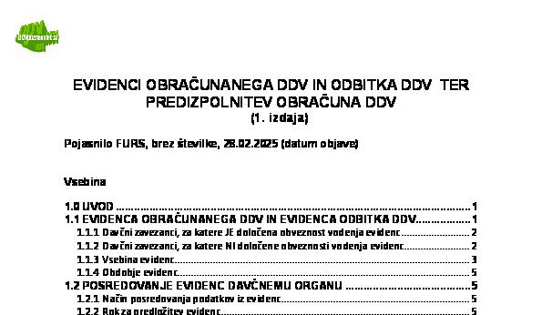 EVIDENCI OBRAČUNANEGA DDV IN ODBITKA DDV TER PREDIZPOLNITEV OBRAČUNA DDV (podrobnejši opis, 18. izdaja) 01.12.2025 01.12.2025