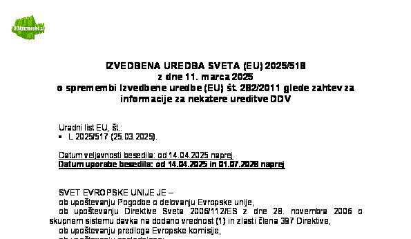 IZVEDBENA UREDBA SVETA (EU) 2025/428 z dne 18. februarja 2025 o spremembi Izvedbene uredbe (EU) št. 282/2011 glede elektronskega potrdila o oprostitvi plačila DDV 01.07.2031 05.03.2025