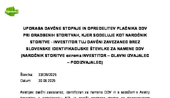 SLOVENSKI DAVČNI ZAVEZANEC OPRAVI STORITEV SEČNJE DREVES (GOZDA) NA OZEMLJU SLOVENIJE HRVAŠKEMU DAVČNEMU ZAVEZANCU – Določitev kraja opravljanja storitev skladno z določili ZDDV-1 25.11.2025 25.11.2025