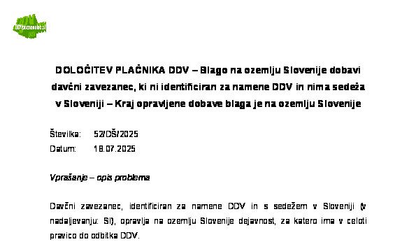SLOVENSKI DAVČNI ZAVEZANEC OPRAVI STORITEV SEČNJE DREVES (GOZDA) NA OZEMLJU SLOVENIJE HRVAŠKEMU DAVČNEMU ZAVEZANCU – Določitev kraja opravljanja storitev skladno z določili ZDDV-1 25.11.2025 25.11.2025