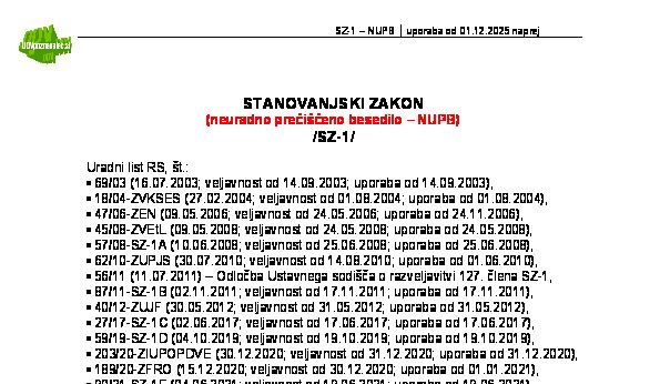 06. STANOVANJSKI ZAKON (SZ-1 - neuradno prečiščeno besedilo) 06.08.2024 30.11.2025 [!] 22.07.2024