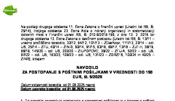 NAVODILO za postopanje s hitrimi pošiljkami, št. 14/2024 01.10.2024 20.09.2024