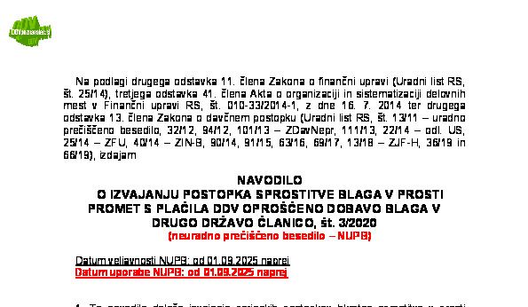 NAVODILO o formalnostih, vezanih na plačevanje uvoznega DDV, št. 13/2016 01.09.2025 28.08.2025