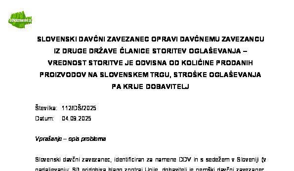 SLOVENSKI DAVČNI ZAVEZANEC OPRAVI STORITEV SEČNJE DREVES (GOZDA) NA OZEMLJU SLOVENIJE HRVAŠKEMU DAVČNEMU ZAVEZANCU – Določitev kraja opravljanja storitev skladno z določili ZDDV-1 25.11.2025 25.11.2025