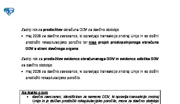 Predložitev obračuna DDV-O ter plačevanje davčne obveznosti 11.12.2025