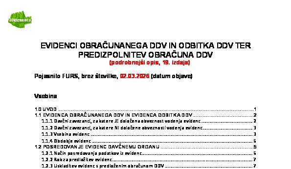 Kratka vprašanja in odgovori – evidenci obračunanega DDV in odbitka DDV ter predizpolnitev obračuna DDV (18. izdaja) 02.03.2026 02.03.2026