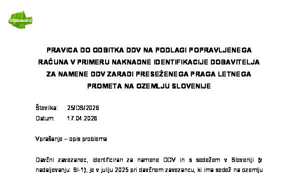 POPRAVEK ODBITKA DDV ZARADI SPREMEMBE NAMEMBNOSTI UPORABE NEPREMIČNINE – Prehod iz dejavnosti s pravico do odbitka v dejavnost brez pravice do odbitka DDV – Postopek in način izvedbe 08.04.2026 08.04.2026