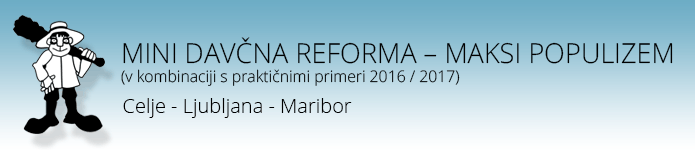 Prijavo lahko izvedete: Več informacij o seminarju lahko dobite na (02) 23 111 19 ali seminarji@bilans.si | | BESEDA O PREDAVATELJIH Mira Roppa, spec.davč.svet., je samostojna davčna svetovalka. Na področju davčnega svetovanja deluje že več kot petnajst let. Ima zaključen podiplomski študij in s tem pridobljen naziv specialistke davčnega svetovanja (EPF v Mariboru), fakultetna izobrazba univerzitetno diplomirana ekonomistka, specialistka za davek od dohodkov pravnih oseb, preventivnih davčnih pregledov, optimizacijo poslovnih učinkov podjetij z davčnega vidika, dohodnine in računovodstva ter nastopa kot pooblaščenka v davčnih postopkih. Je avtorica številnih člankov in soavtorica knjige z davčnega področja ter uveljavljena predavateljica na davčnih seminarjih. Kot predavateljica je sodelovala na že več kot 200 seminarjih, konferencah, davčnih šolah … Matjaž Kodrič, univ.dipl.ekon. samostojni davčni svetovalec. Kot predavatelj je v letih 2003-2016 sodeloval na več kot 50 izobraževanjih s področja obdavčitve z raznoliko tematiko (dohodek iz dejavnosti, računovodsko-davčni vidiki uvedbe evra, davčna obravnava bonitet, davčni vidiki udeležbe delavcev v dobičku, obdavčitev dohodkov poslovodij, obračunavanje prispevkov obveznega socialnega zavarovanja, davčne blagajne). Je tudi avtor treh knjig s področja obdavčitve dohodka iz dejavnost, od katerih je ena izšla v pisni, drugi dve pa v elektronski obliki, ter večjega števila člankov in prispevkov, ki so bili objavljeni v strokovnih revijah in na spletnih straneh www.SuperDavki.com. Pri svojem poklicnem in strokovnem delu se osredotoča predvsem na praktične vidike uporabe predpisov v vsakodnevni davčno-računovodski praksi. Mag. Damijan Špes, samostojni davčni svetovalec, avtor številnih člankov ter 6 knjig (v tiskani obliki) z davčnega področja. Kot predavatelj je sodeloval na že več kot 400 seminarjih, konferencah, davčnih šolah … Izvajanje davčne zakonodaje kot praktik prikazuje predvsem na aktualnih davčnih primerih. Posebej ljubi tematiki sta mu davek na dodano vrednost in davčni postopek, obvladuje pa širšo davčno-računovodsko tematiko. PRIPOROČILO ZA OBISK SEMINARJA Seminar je glede na obravnavano tematiko namenjen širšemu krogu slušateljev: računovodjem, pravnikom, revizorjem, davčnim svetovalcem, direktorjem, komercialistom, informatikom ter drugim odgovornim osebam za računovodsko in davčno področje pri davčnih zavezancih (gospodarske družbe, društva, poslovne enote nerezidentov, javna podjetja, samostojni podjetniki ...). KRAJ IN DATUM IZVEDBE Celje Dvorana Celjanka (na celjskem sejmišču – I. nadstropje) Dečkova 1, 3000 Celje Četrtek, 01.12.2016 Od 9.00 do cca. 14.00 ure
